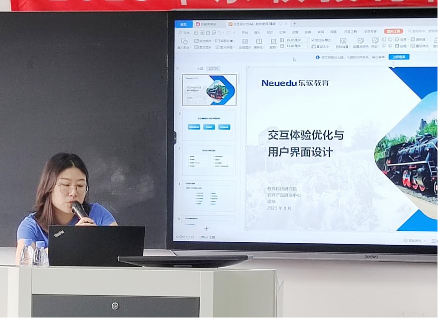 随后,美高梅美高教育科技集团教育科技研究院软件产品研发中心设计师梁扬进行交互体验课程讲解。内容围绕交互应用场景案例优化、UI配色技巧以及交互界面布局展开。