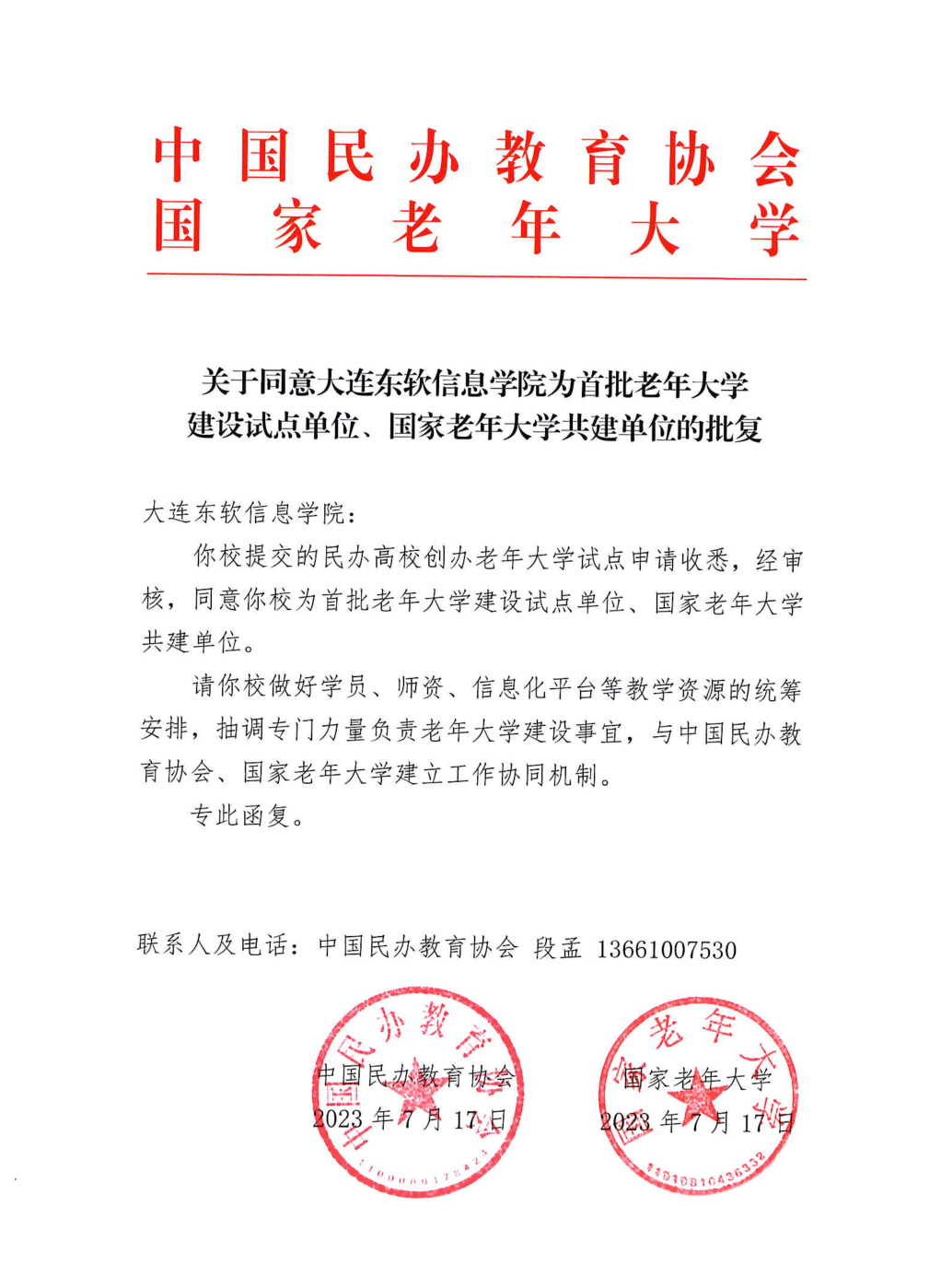 近期,由中国民办教育协会、国家老年大学联合发文,大连美高梅美高信息学院获首批老年大学建设试点单位、国家老年大学共建单位。