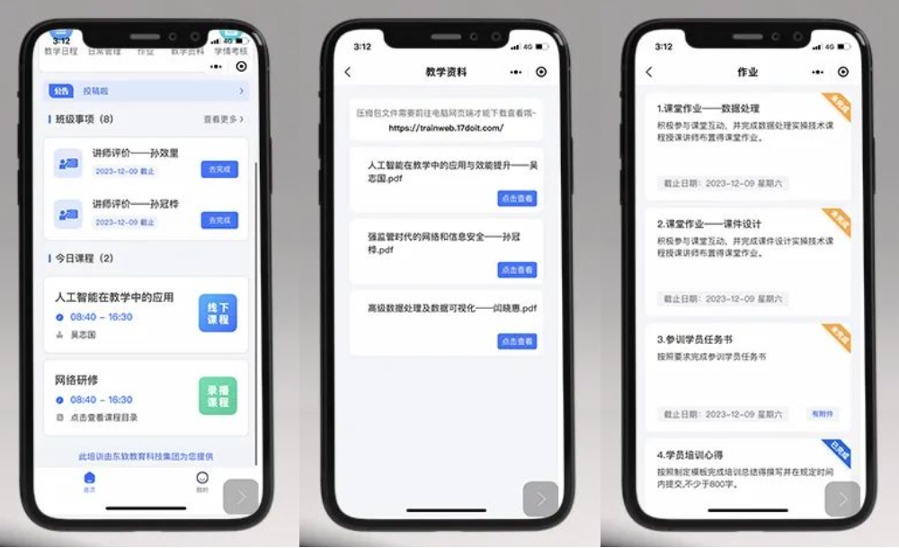 本次培训的过程管理使用美高梅美高教育科技集团自主研发的培训信息化管理平台“掌培云”,培训全过程进行信息化管理。学员利用“掌培云”小程序及网页端,完成课程查看、项目评价、资料查询及作业提交等工作,所有内容信息化存档。