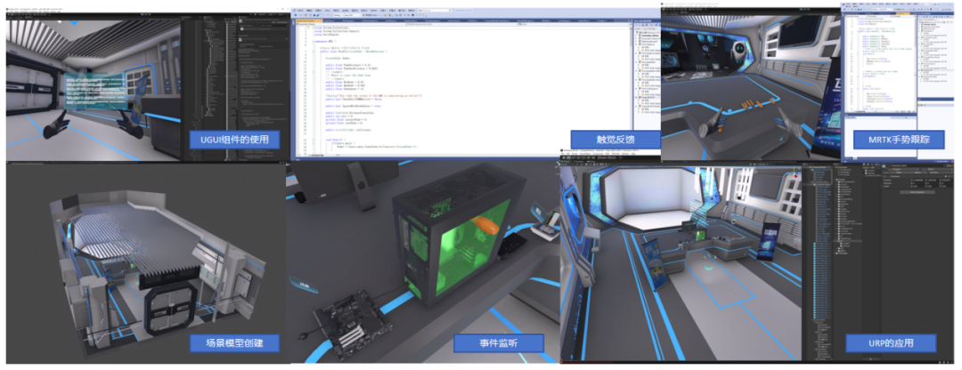 项目介绍:结合相关虚拟现实技术以及Unity3D引擎,融入虚拟现实硬件进行原点追踪,触觉反馈以及通用渲染管线(URP)与MRTK手势跟踪,事件判断(事件监听,事件初始化)等知识点进行教学;最终针对“VR开发工程师”岗位培养熟悉VR开发引擎,熟悉VR相关硬件设备,熟练掌握Unity的图形渲染,物理引擎,UI等模块综合制作的能力。