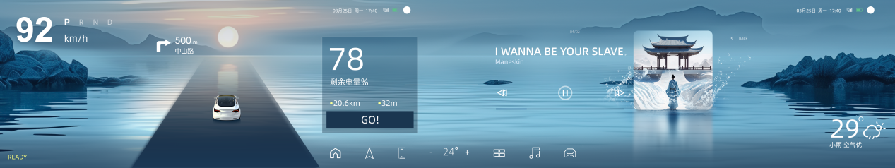 项目介绍:新能源汽车的开展带动了智能化的快速开展,当前国内智能座舱整体渗透率已超过50%,未来随着年轻购车群体的增加,智能座舱将会加速普及,汽车人机交互HMI作为用户直接感知的空间生态也将随之快速增长。在生成式AI大模型、车内投影、裸眼3D等新技术的有助于下,智能汽车人机交互正迎来历史性的变革。本项目引入AIGC技术,赋能于HMI,为新能源汽车设计车载UI。