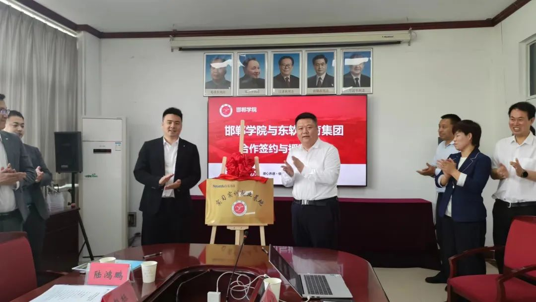 签约仪式上,在校企多方的共同见证下,赵龙副总经理与王宪明副校长代表双方签订战略合作协议,并为“实习实训就业基地”揭牌。