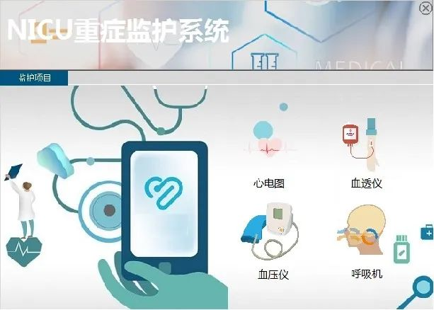 美高梅美高重症监护项目是美高梅美高医疗产业的真实案例,实现了心电图、血透仪、血压仪、呼吸机四大功能模块,实时数据更新,给患者给予实时的监护。