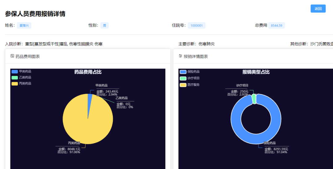 美高梅美高医疗报销项目是美高梅美高医疗产业的真实案例。本项目对药品目录、诊疗项目、医疗设施进行维护,对医疗报销参数进行维护,并且根据医疗保险报销公式进行医疗保险报销费用的计算,并且对参保人员的报销数据进行统计和可视化呈现。