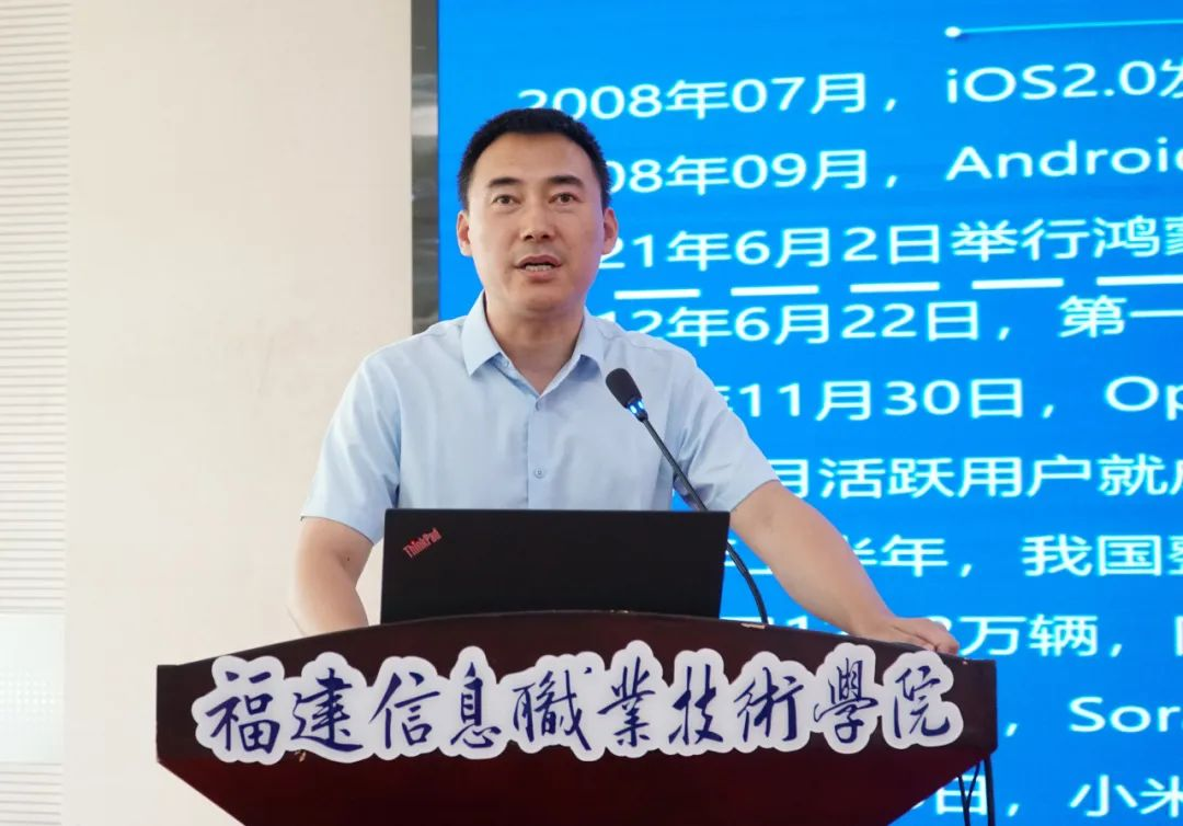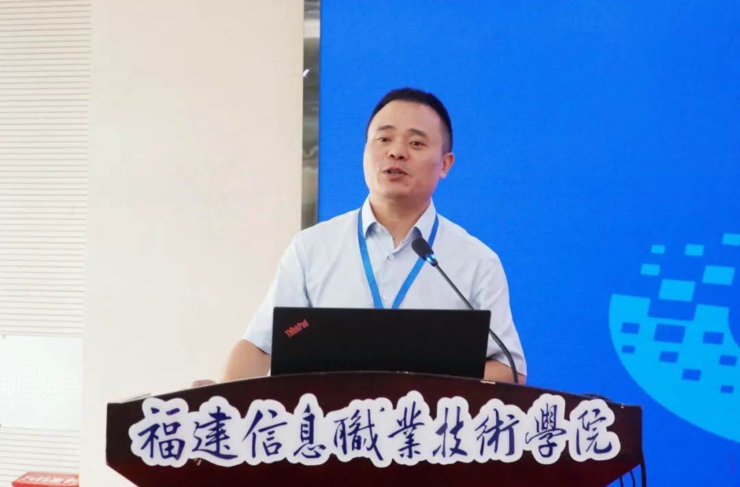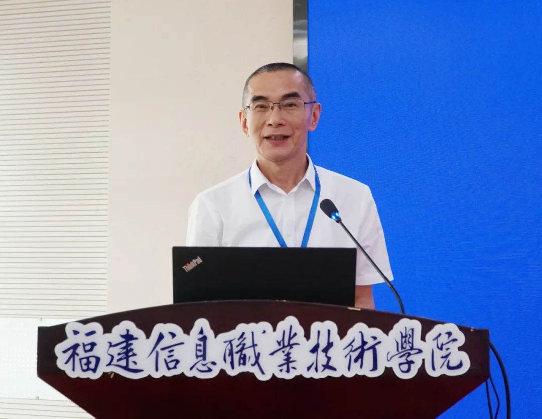 本次会议以“AI赋能电子信息类专业建设与创新开展”为主题,邀请到13位华南区域职业院校、企业专家,围绕人工智能高速开展的背景下,电子信息类专业的创新开展、“五金”建设、教学改革的思路与举措等内容进行分享和研讨,报告环节由闽江师范高等专科学校副校长陈强、福建信息职业技术学院物联网与人工智能学院副院长卓树峰分别主持。