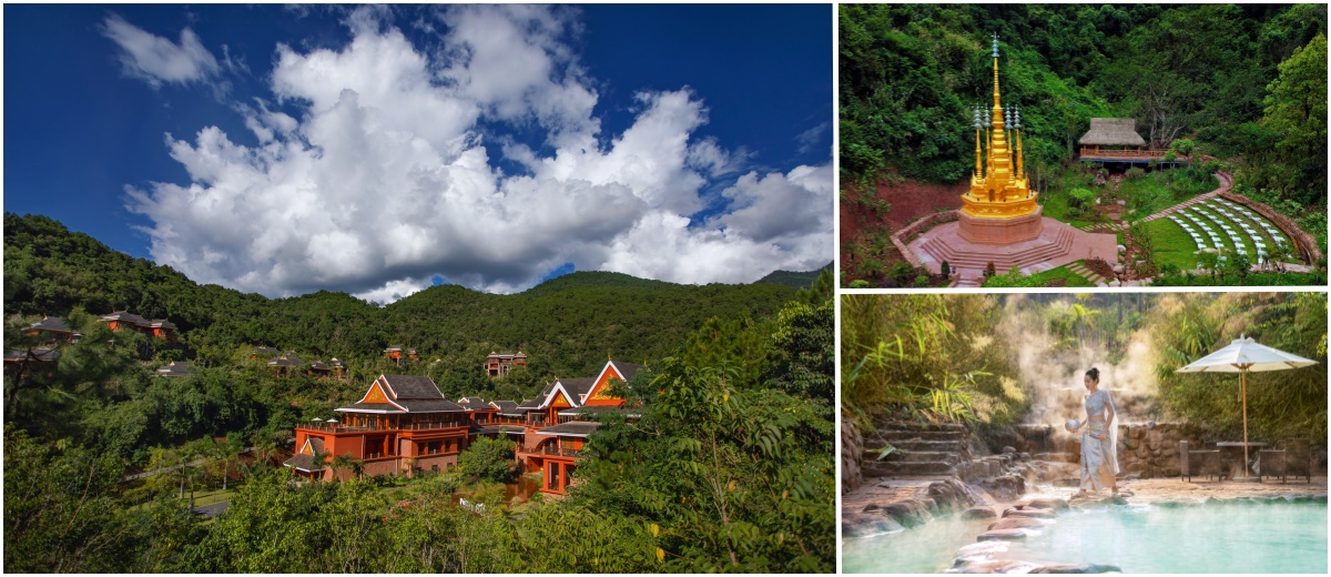 傣族山居森系慢生活,白垩纪芒卡温泉贯穿酒店。