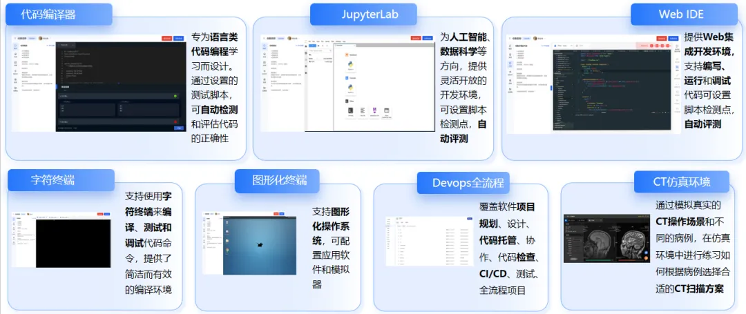 无缝结合实验、实训教学,支持从理论学习到实践应用的完整教育路径,给予丰富的贯穿实验、实训教学多样化、轻量级的教学环境、使学生能够“任务时间、任何地点”均能召开项目训练,提升学生的实践能力和解决问题的技能。