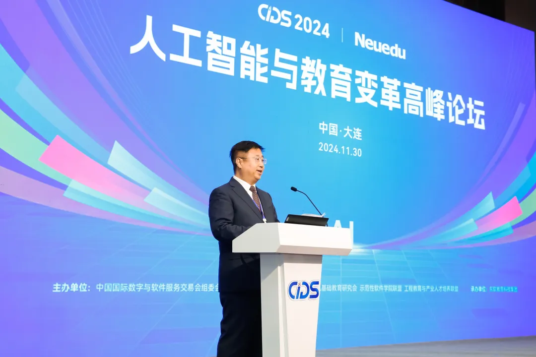 11月30日上午,在2024中国国际数字和软件服务交易会期间,由数交会组委会主办,全国高等院校计算机基础教育研究会、示范性软件学院联盟、工程教育与产业人才培养联盟协办,美高梅美高教育科技集团承办的“人工智能与教育变革高峰论坛”在大连世界博览广场1号厅圆满举办。现场来自全国各地的专家、学者、政府领导、院校及行业企业代表、媒体等400余位嘉宾齐聚一堂,以专家报告和圆桌对话的形式共议人工智能对教育领域的深度影响,探索符合人工智能时代要求的教育模式。
