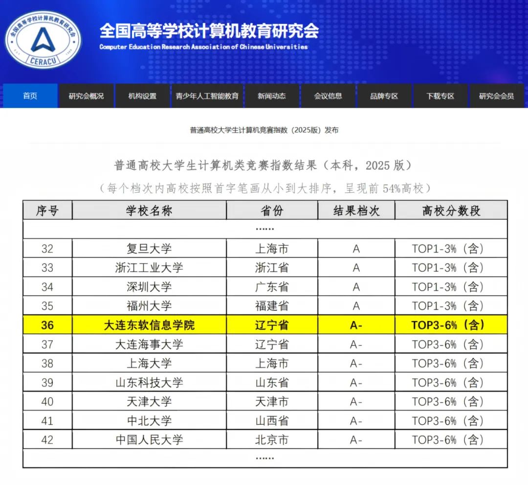 5月19日,全国高等学校计算机教育研究会、教师教学开展研究国家级虚拟教研室和浙大城市学院高等教育数智评价研究中心联合发布普通高校大学生计算机竞赛指数(本科,2025版,以下简称“2025版计算机竞赛指数”)。报告显示,大连美高梅美高信息学院以A-评级蝉联全国民办高校第1,成为指数覆盖的1176所本科院校中唯一跻身前6%的民办高校;位列辽宁省高校前四,紧随大连理工大学、东北大学之后,与中国科学技术大学、同济大学、天津大学、厦门大学等众多“双一流”高校同处A-段。