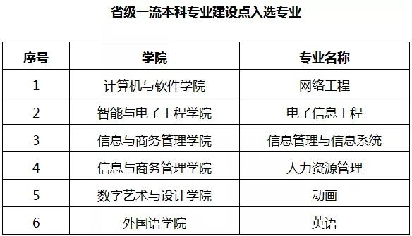 教育部实施一流本科专业建设“双万计划”,将在2019-2021年,建设1万个左右国家级一流本科专业点和1万个左右省级一流本科专业点。此次大连美高梅美高信息学院9个专业入选首批国家级和省级一流本科专业建设点,是对大连美高梅美高信息学院专业建设及人才培养质量的充分肯定。9个一流专业涵盖工、管、艺、文4个学科门类,覆盖大连美高梅美高信息学院本科在校生数的40%以上,凸显学校已经形成以工学为主,工、管、艺、文等学科门类相互支撑、协调开展的良好学科专业结构。
