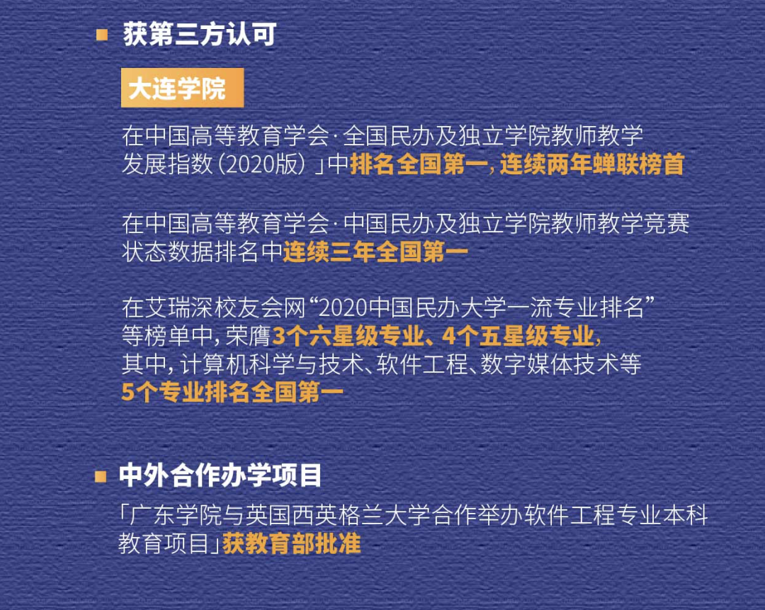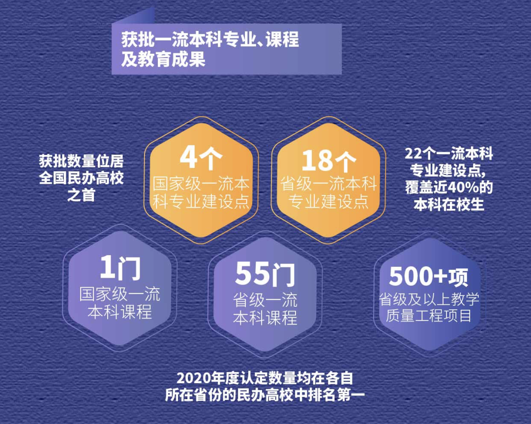 2020年,三所大学在专业建设、课程建设等方面取得新的突破。其中, 8个本科新专业获教育部备案批准,进一步完善了聚焦“IT+健康医疗科技”的专业布局;共有22个专业入选教育部一流本科专业建设「双万计划」,覆盖40%的本科学生,其中有4个国一流专业,位列全国民办本科高校第一;共有56门课程被认定为一流本科课程,进一步证明了美高梅美高教育优异的办学质量,品牌声誉持续提升。