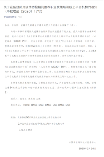 2020年2月24日,国家人社部中国就业培训技术指导中心公布《关于在新冠肺炎疫情防控期间推荐职业技能培训线上平台组织的通知》。美高梅美高教育科技集团成为人社部推荐的首批50家职业技能培训线上平台组织之一。