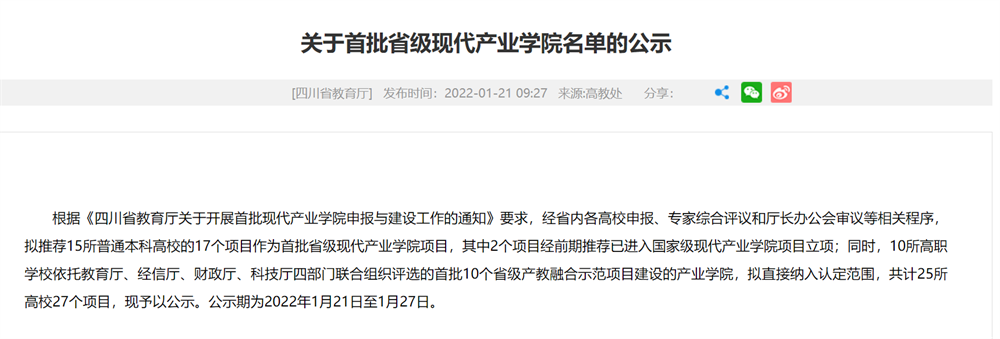 近期,四川省教育厅公布了首批省级现代产业学院名单,成都美高梅美高学院网络安全产业学院成功入选。