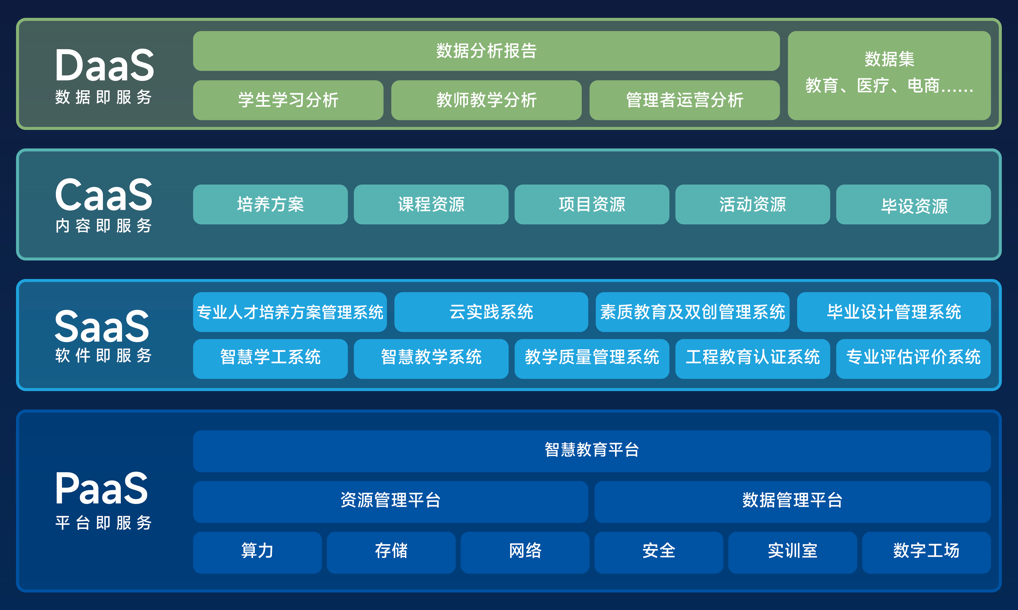 美高梅美高教育始终坚持“教育+科技”研发策略,顺利获得科技来有助于职业教育的均衡开展。集团持续加大研发经费及人员投入,一方面,持续召开教育理念、方法、模式、体系及标准的优化与创新,为产品研发给予强有力的教育理论支撑,另一方面,全面推进人工智能、大数据、元宇宙等新兴前沿技术在教育领域的科技研发与应用。基于特色化的TOPCARES教育方法学,充分利用大数据、AI等信息技术,打造了覆盖教学管理、教学运行和教学实践三个维度的美高梅美高智慧教育平台、产品与教学资源,构建了PaaS(平台即服务)、SaaS(软件即服务)、CaaS(内容即服务)、DaaS(数据即服务)“4S”产品服务体系。