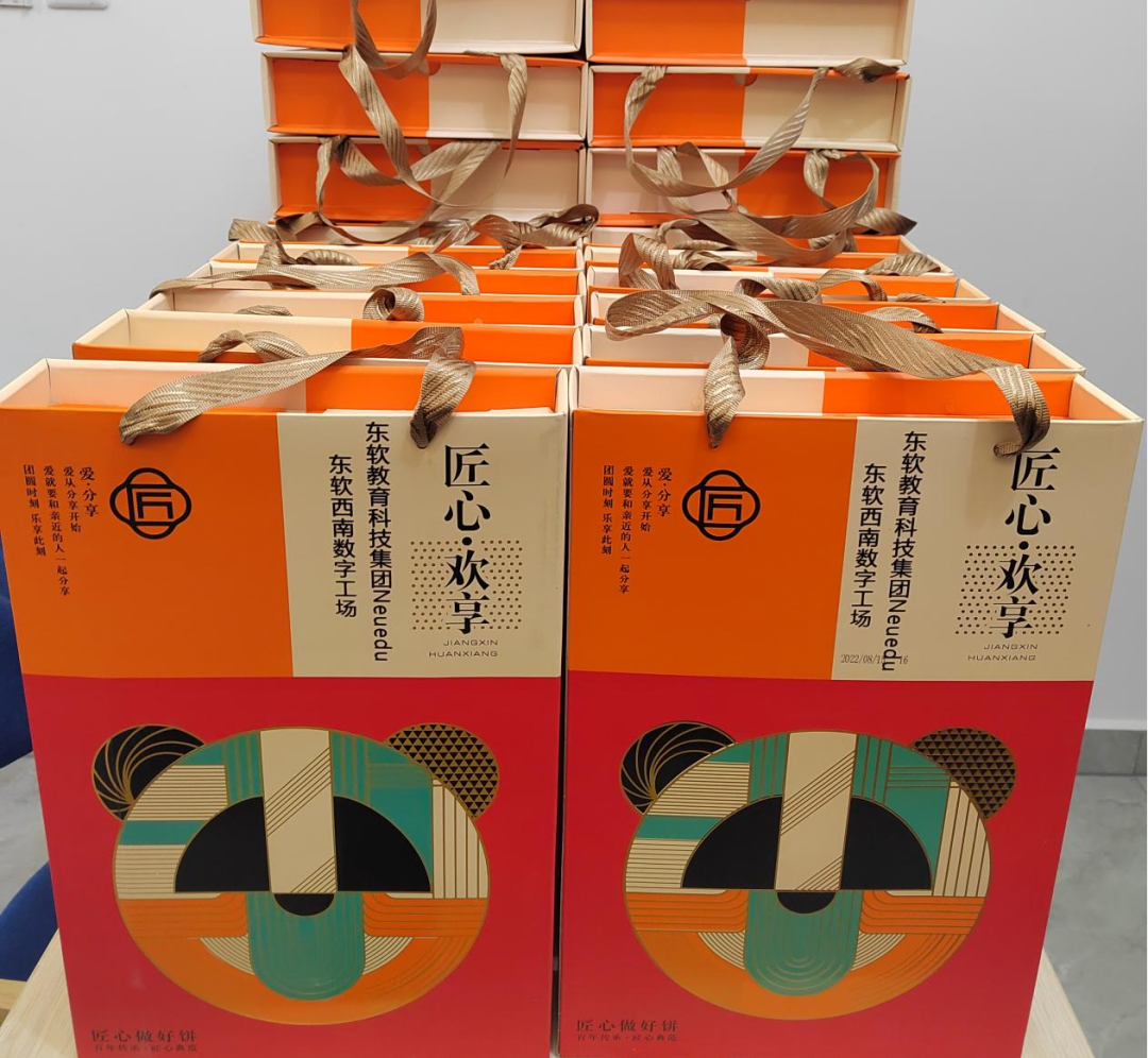中秋福送到,美高梅美高人月圆。因成都疫情无法召开线下活动,故为学员定制了“美高梅美高”字样的中秋月饼。9月9日,在美高梅美高西南数字工场,基地老师和宿管到每间宿舍为学员发放中秋月饼。小小的月饼传递的是浓浓的祝福,承载着对学生的真心关爱。虽然各位学员无法回家,但盒盒“熊猫”月饼却饱含了情谊,在特殊的日子为大家带来温暖。学员们在四川的相遇让节日变成期待,来之不易的欢聚团圆都是中秋节赋予每一个人专属的记忆。