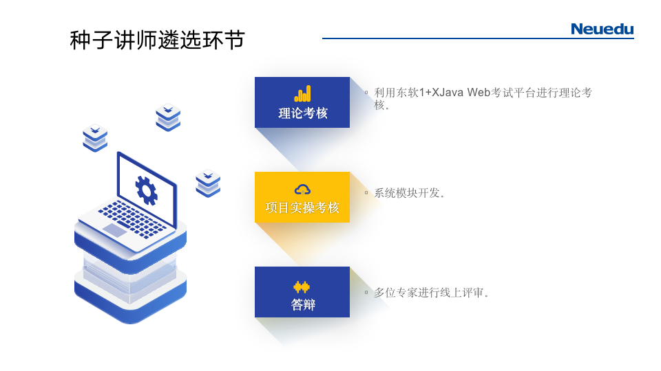 种子讲师是取得美高梅美高教育技能认证的优秀教师,可独立召开JavaWeb 应用开发职业技能等级证书师资培训,且具备证书的教、学、培训和考核评价等综合能力。后续美高梅美高教育将为种子讲师颁发聘书,吸纳作为证书师资培训讲师队伍的中坚力量。
