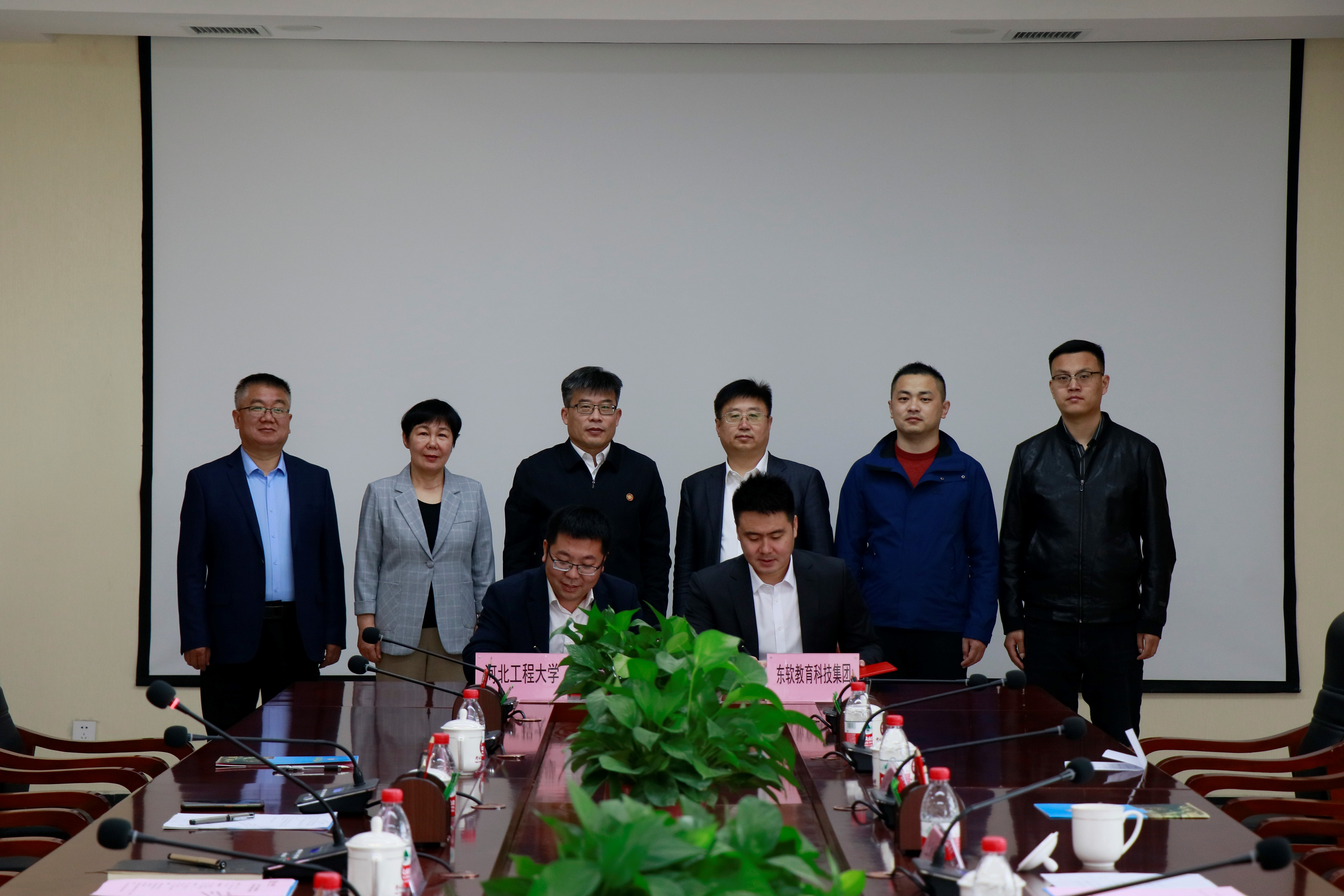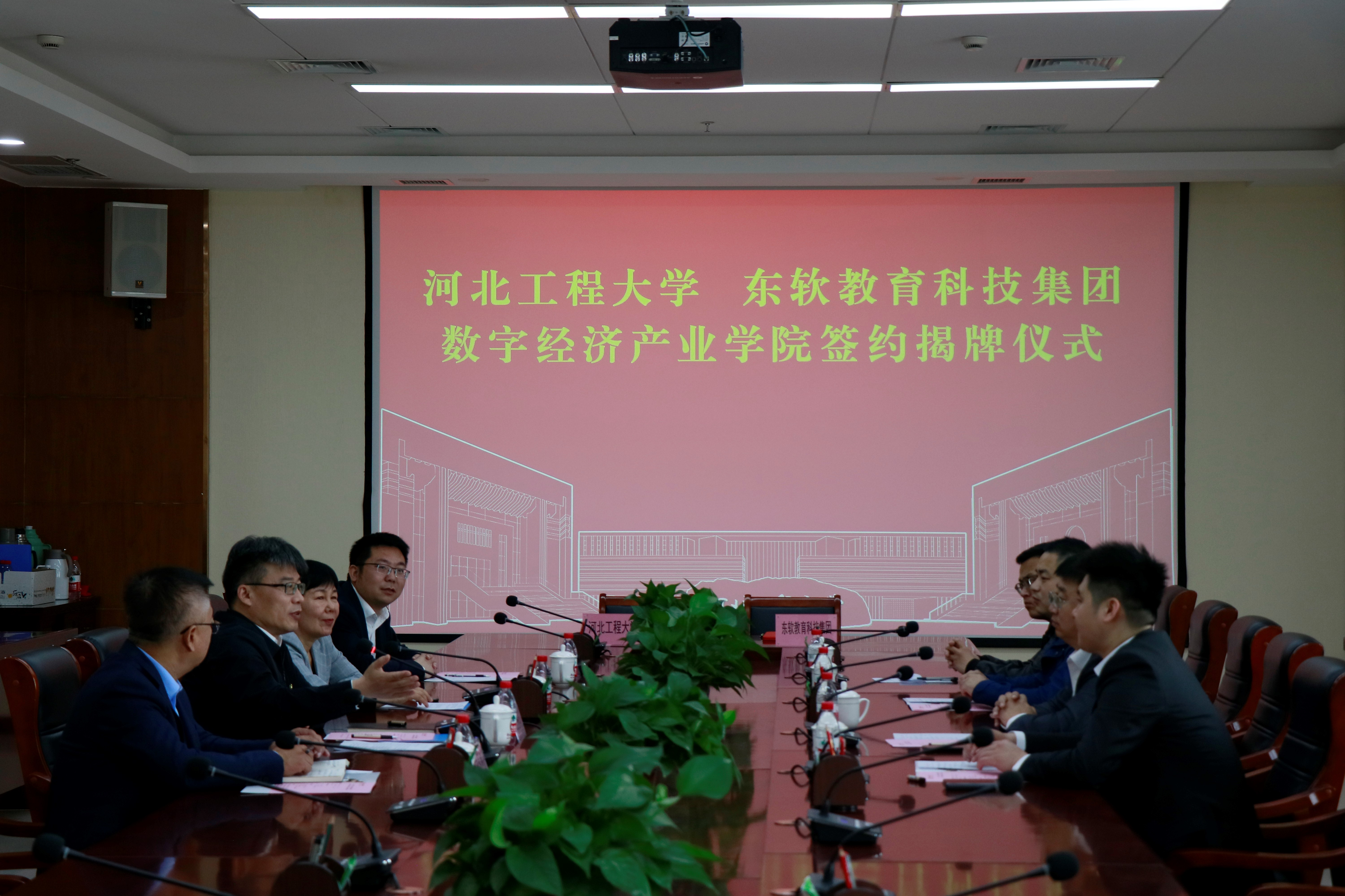 29 March 2023, Dalian - Neusoft Education Technology Group Co. Limited ("Neuedu" or "the Group") and Hebei University of Engineering ("HUE") held a signing and unveiling ceremony for the deep collaboration in building Digital Economy Industry College. YU Shujiang, deputy secretary of the Party Committee and president of HUE, WU Guoying, vice president of Hebei Engineering University, GAO Yongge, director of the Teaching Affairs Office, and WANG Chao, dean of the School of Information and Electrical Engineering, attended the ceremony. LI Yingao, senior vice president of Neuedu, ZHAO Long, general manager of North China Region, and GUO Shuai, sales director of Higher Education Business in North China Region, also attended the ceremony.
