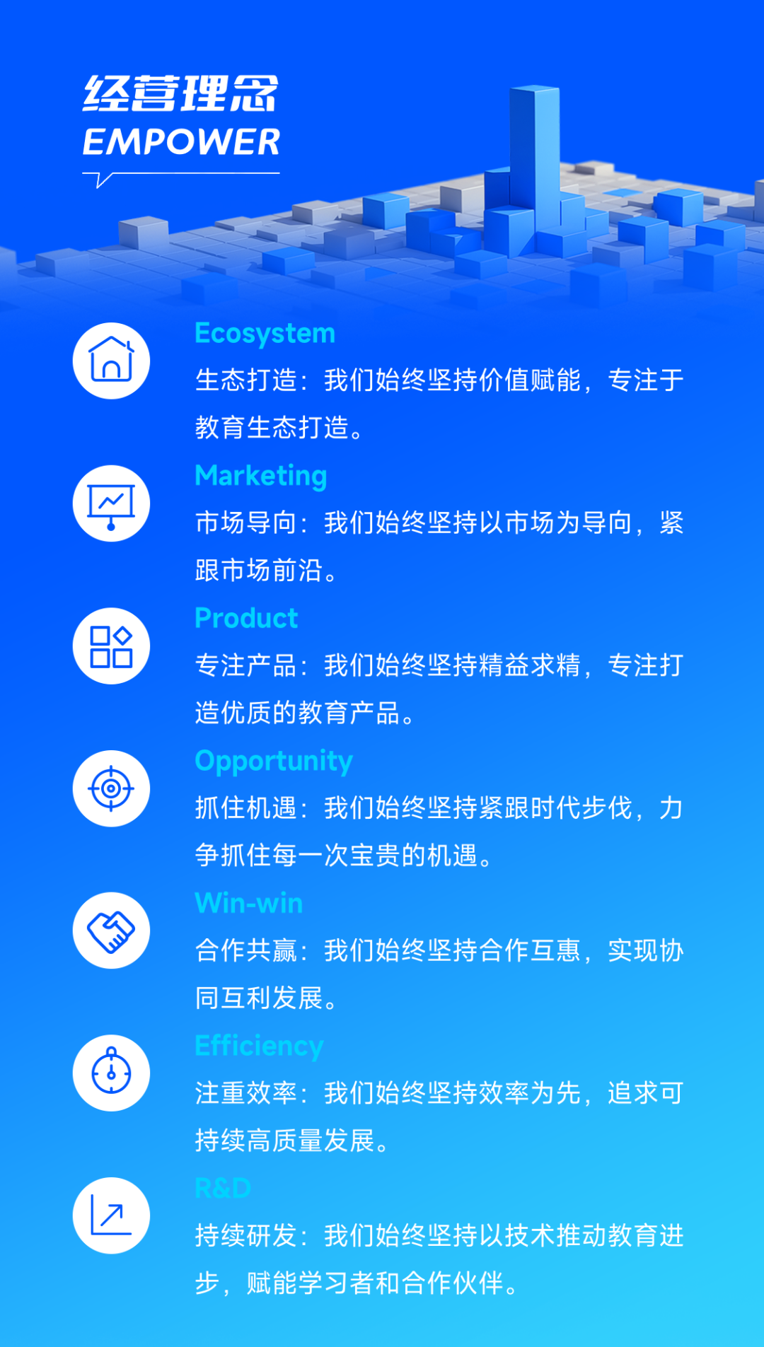 为进一步实行文化的传承与创新,我们从精神文化、制度文化、行为文化、环境文化四个层面对美高梅美高教育科技集团的文化体系进行了系统梳理,以我们的文化基因、文化理念、行为方式、文化实践、文化故事五个章节形成了《文化手册》。本文重点从文化理念上摘取重点内容供全体美高梅美高教育人学习分析,在核心价值观引领下,进一步凝聚开展共识,实现全员的文化共鸣、同频共振,有助于美高梅美高教育事业高质量开展。